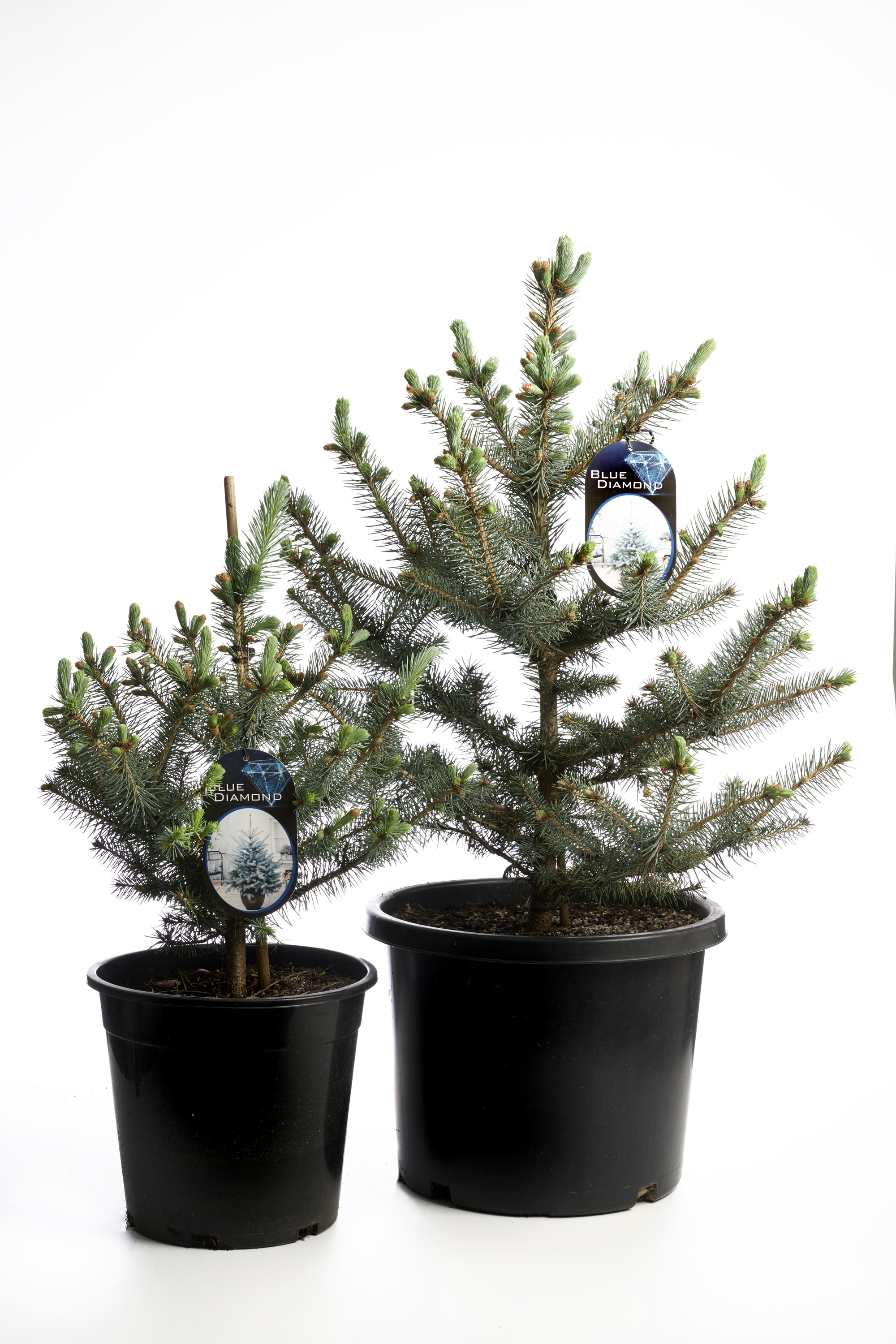 A very attractive blue spruce with bright silver blue foliage. Slow growing specimen or feature tree perfect for the garden. Placed in a decorative pot, Blue Diamond makes an excellent long lasting Christmas tree. After Christmas, place outside in a shady spot and gradually reintroduce to full sun. Repot into a larger container if required.